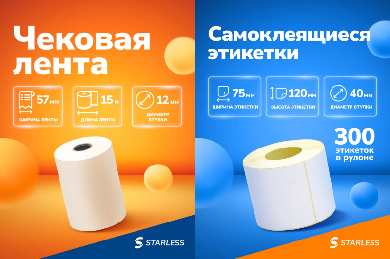 С мая 2025 года наша компания STARLESS стартует розничные продажи на маркетплейсах. Надеемся на отличный старт! В продаже будут популярные продукты: чековая лента и самоклеящиеся этикетки.